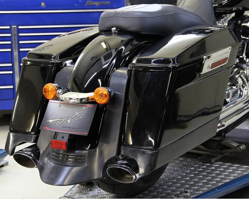 エクステンションは、純正サドルバッグのラインに合わせて専用設計しましたので、