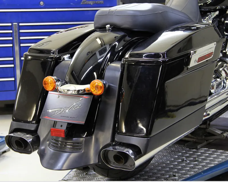 純正サドルバッグを簡単な加工でバガースタイルのエクステンションサイドバッグに変身できます。