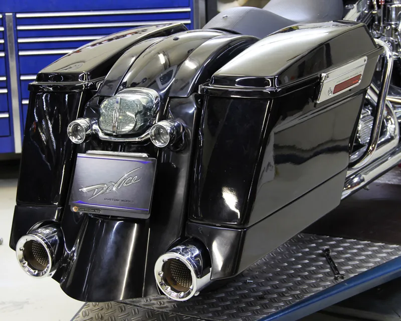 純正サドルバッグを簡単な加工でバガースタイルのエクステンションサイドバッグに変身できます。